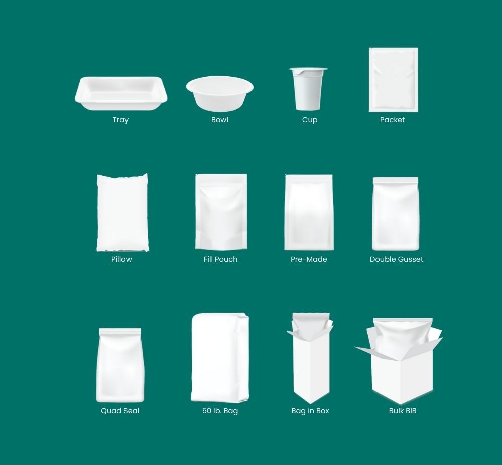 - Ranges from single serve (0.5 oz) to 1,200 lb. bulk formats
